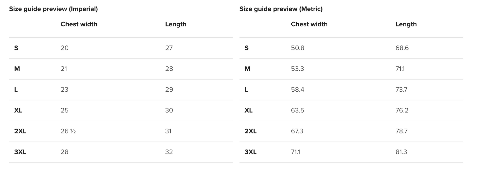 | CHEST WIDTH (cm) | LENGTH (cm) | |